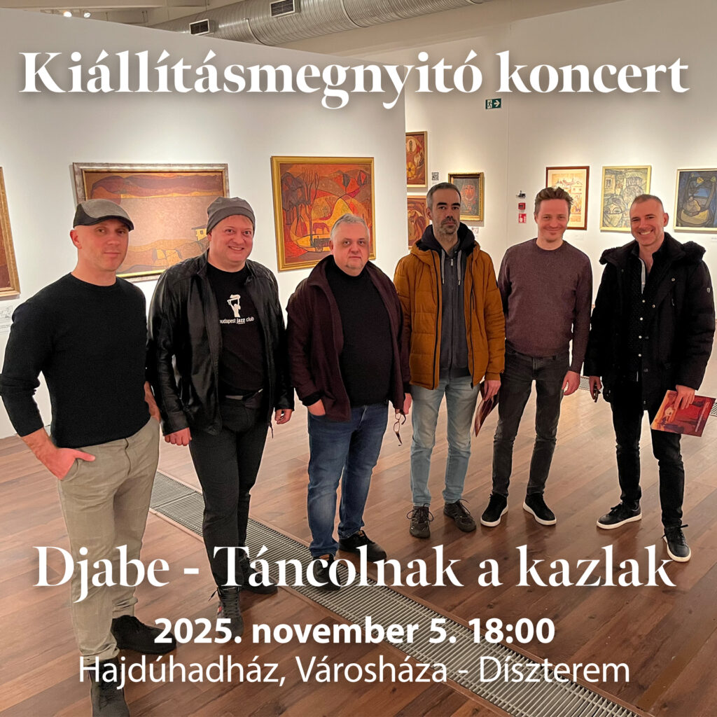 A Djabe zenekart Égerházi Imre fia, Attila hozta létre. Fennállásának 3 évtizede alatt az együttes két album zeneszámait is Égerházi Imre festmények inspirációjára komponálta. Ezen az estén erről a két albumról játszanak, olyan számokat is, amelyeket inspiráló festmények a teremben ki lesznek állítva.